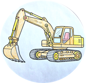 - Show your child the digger colouring sheet. Especially show them the black circle around the digger. Explain that they will use scissors to cut on this black circle.