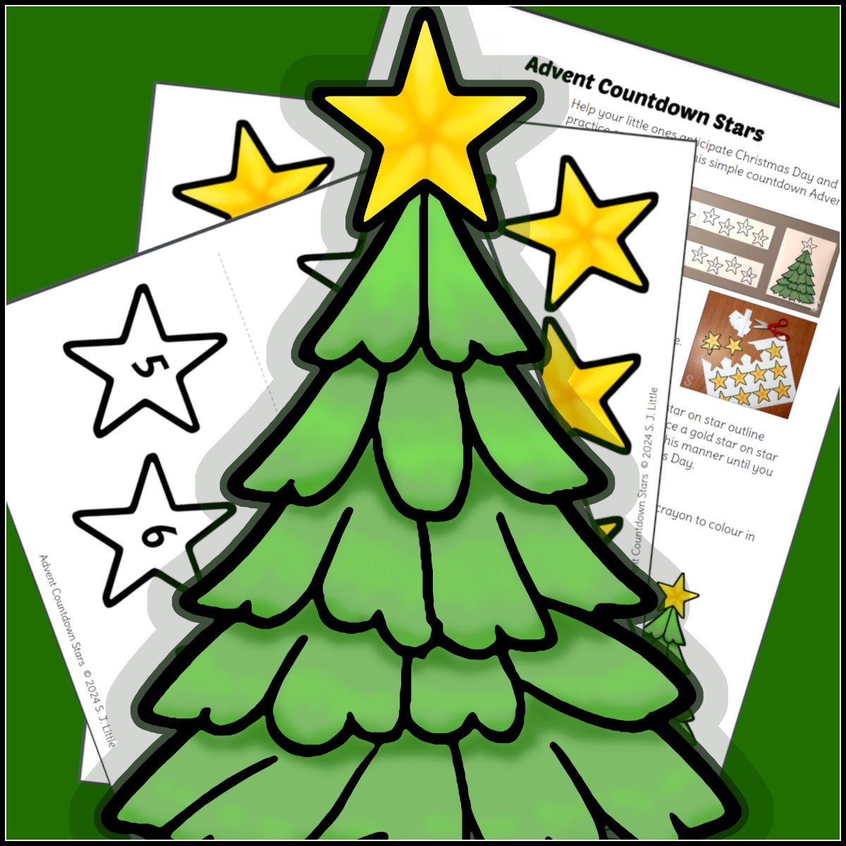 - Two copies of the free printable colouring sheet (or the full-colour version available on TPT). If you have more than 10 children, print a third copy of the colouring sheet to make additional stars.