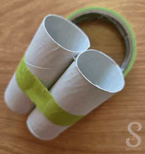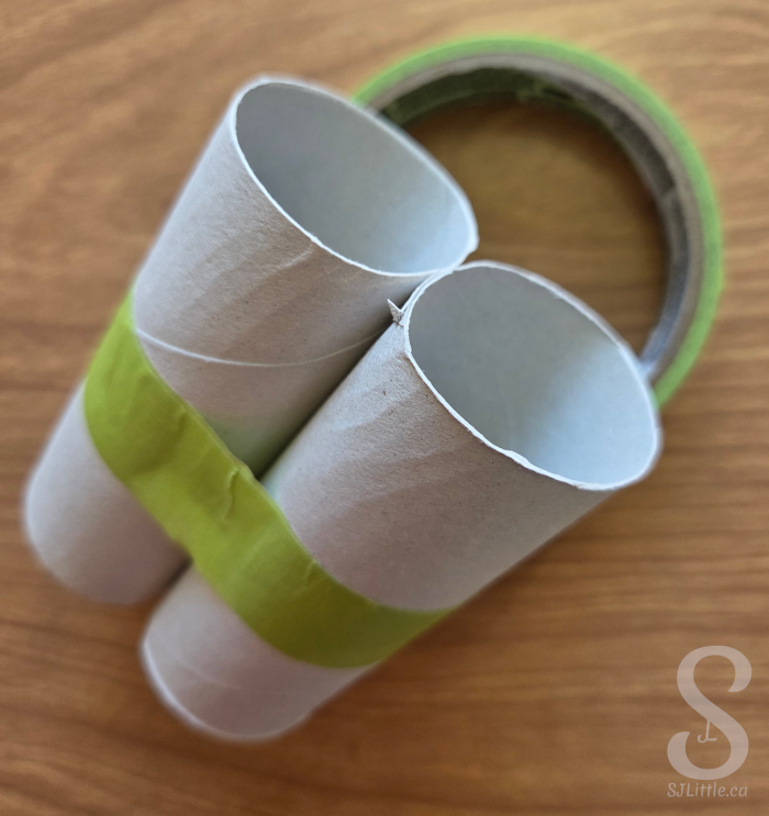 - Tape two toilet paper rolls together side by side to form binoculars.